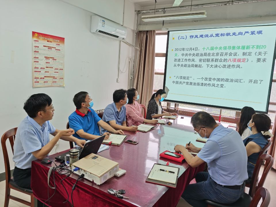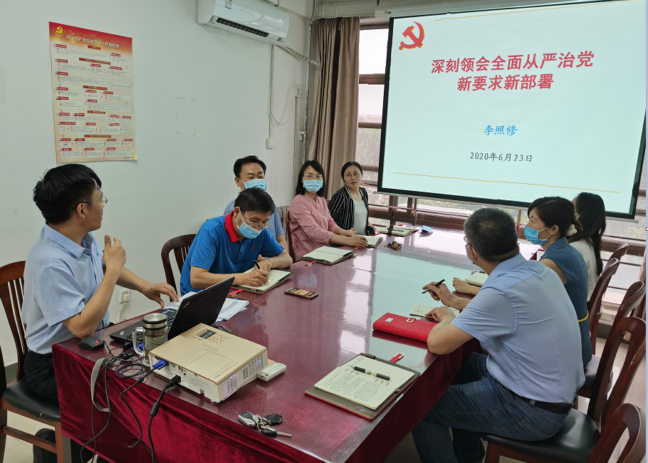 根据学校和机关党委《2020年党风党纪教育月活动方案》要求,6月23日下午,社科处党支部在力行楼414会议室,邀请学校纪委副书记、监察处处长李照修作题为《深刻领会全面从严治党新要求新部署》专题讲座,社科处党支部宣传委员黄建军主持会议。