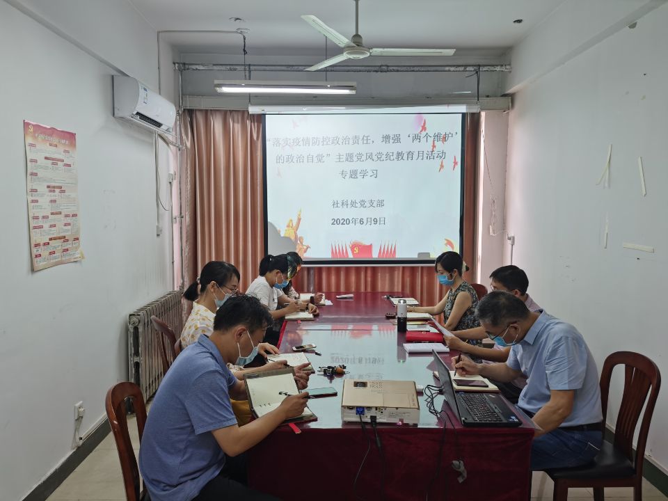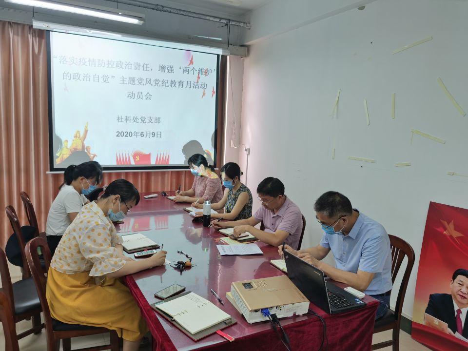 6月9日,社科处党支部2020年党风党纪教育月活动动员会在力行楼414会议室召开,会议由党支部宣传委员黄建军主持。