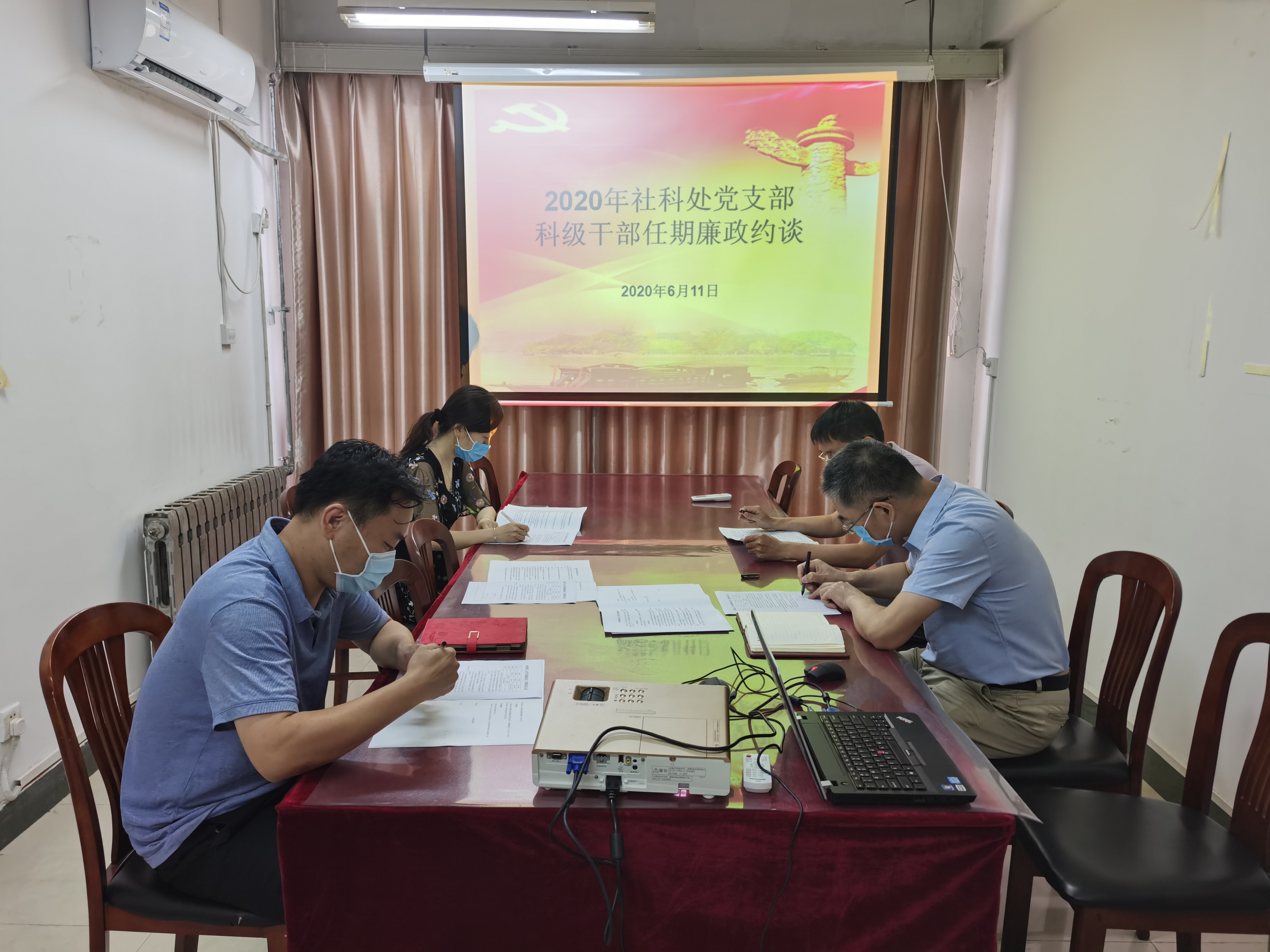 6月11日,社科处党支部在力行楼414会议室,召开科级干部任期廉政约谈会。
