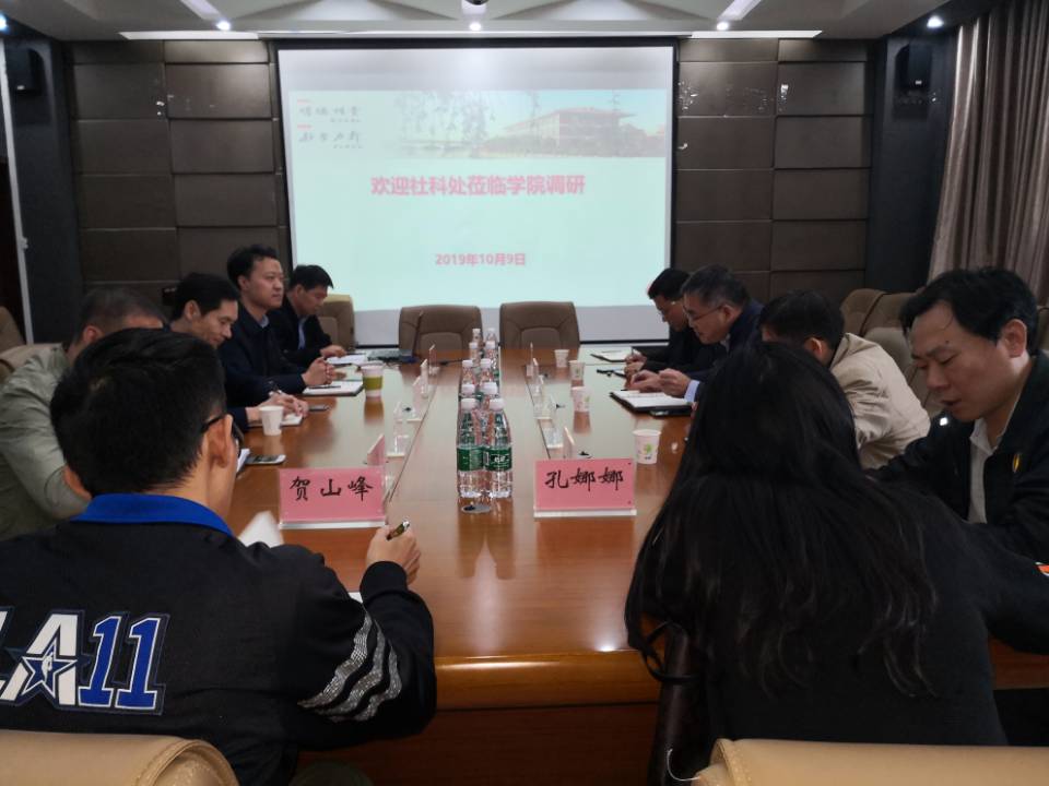为深入了解学院科研发展情况,做好国家社科基金动员和征集广大师生意见,推动学校哲学社会科学高质量发展,10月9日下午和11日上午,社科处处长牛海鹏一行5人到应急管理学院、外国语学院和马克思主义学院进行调研。相关学院领导、学科、基地和团队负责人及科研骨干参加座谈。