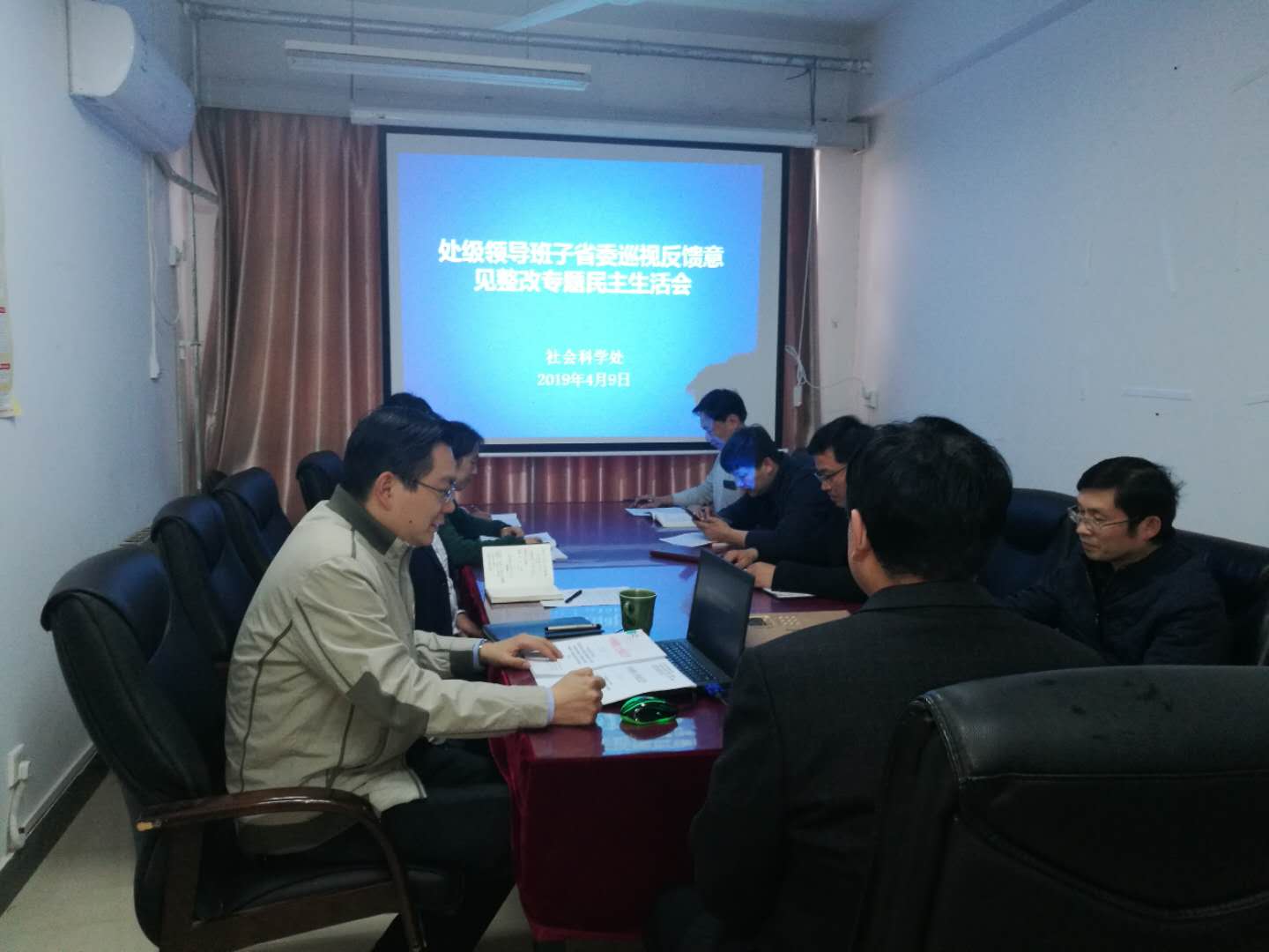 4月9日下午,社会科学处党支部在一号综合楼414室召开处级领导班子省委巡视反馈意见整改专题组织生活会,副校长张锟参加生活会并进行点评,会议由支部书记程伟主持,支部全体党员参加。