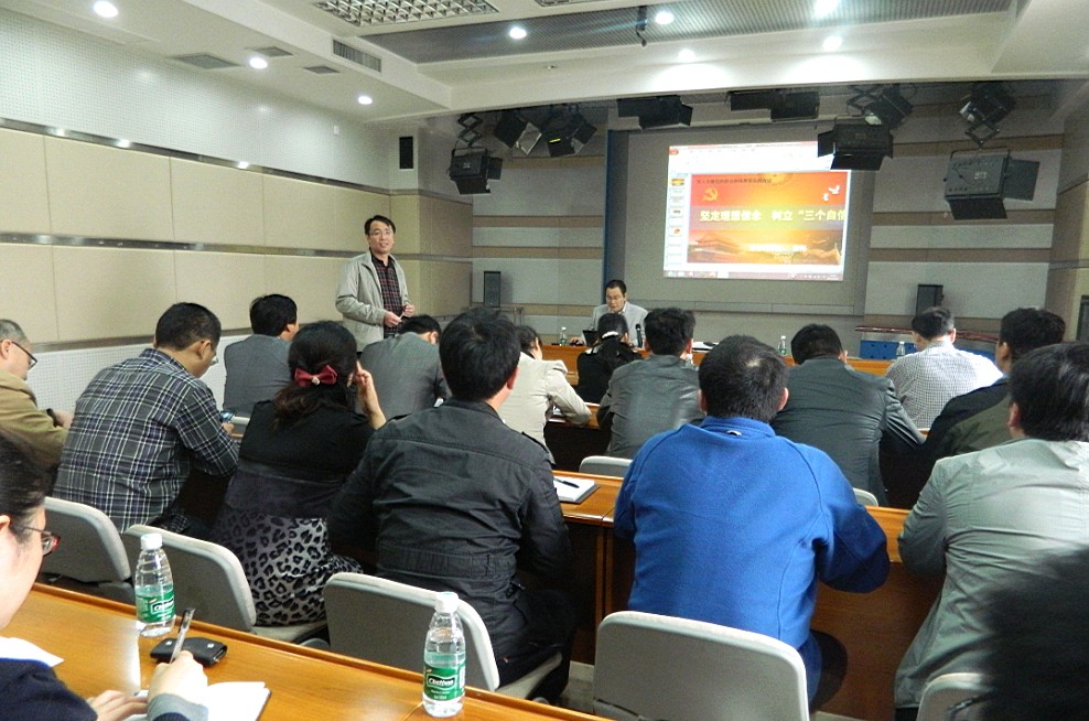 4月21日下午,社会科学处和现代教育技术中心在二号实验楼五楼演播室共同举行党的群众路线教育实践活动专题党课辅导报告。社会科学处处长程伟做了题为《坚定理想信念 树立“三个自信”》的报告。社会科学处、现代教育技术中心全体党员参加了党课,报告会由现代教育技术中心主任沈记全主持。