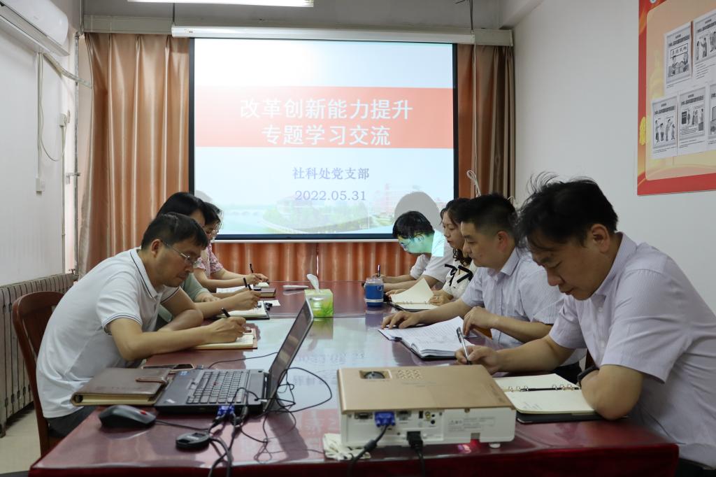 为认真落实《中共河南理工大学委员会“能力作风建设年”活动实施方案》(豫理工党文〔2022〕1号)部署要求,扎实推进“能力作风建设年”活动,按照学校“能力作风建设年”活动5月份工作安排,5月31日,社科处党支部在力行楼414会议室开展人文社科工作改革创新能力提升专题学习交流会,会议由支部书记张合兵主持,全体党员参会。