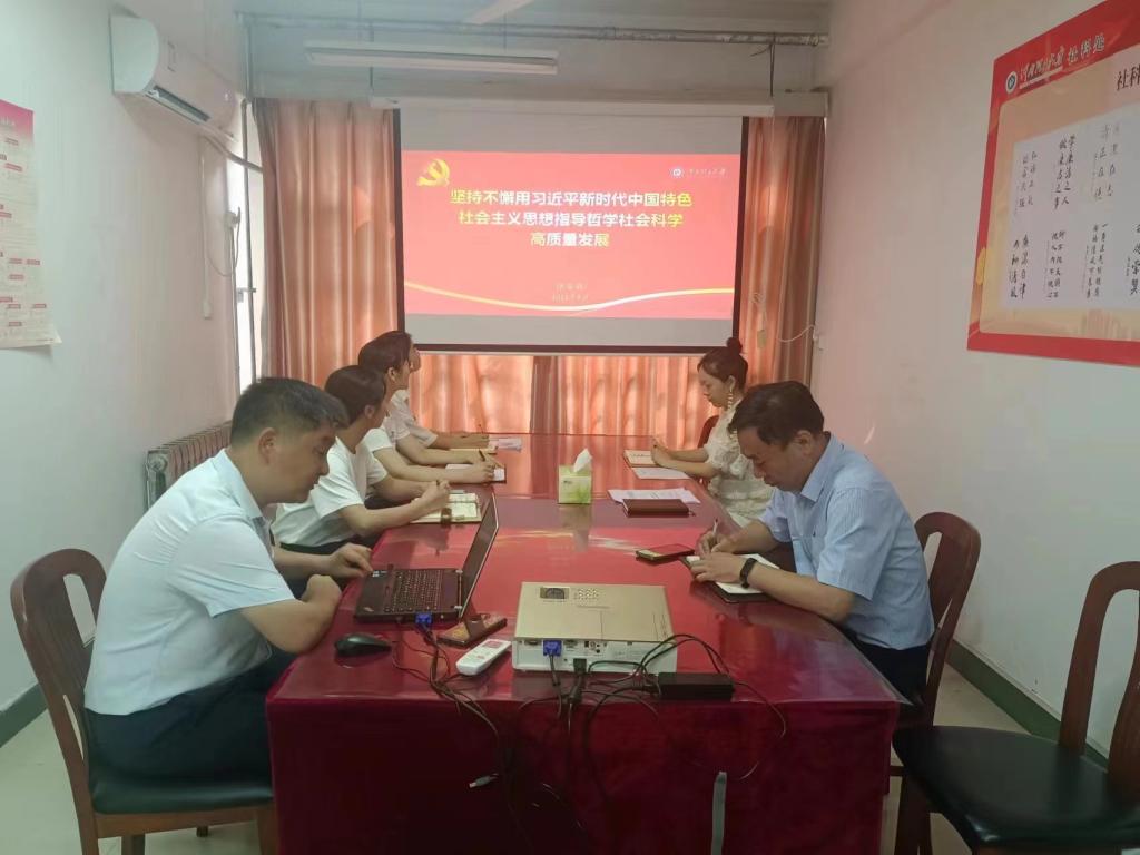 为扎实推进学习贯彻习近平新时代中国特色社会主义思想主题教育,根据校党委主题教育的工作安排,5月25日下午,社科处党支部书记张合兵结合岗位工作实际,以《坚持不懈用习近平新时代中国特色社会主义思想指导哲学社会科学高质量发展》为题,为社科处全体党员作主题教育专题党课。