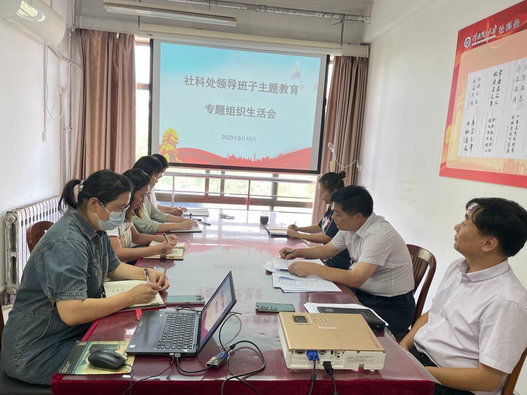 按照校党委《关于召开处级领导班子学习贯彻习近平新时代中国特色社会主义思想主题教育专题民主生活会的通知》的要求,9月15日下午,社科处党支部在力行楼414会议室召开处级领导班子主题教育专题组织生活会,会议由党支部书记张合兵主持,社科处全体党员参会。