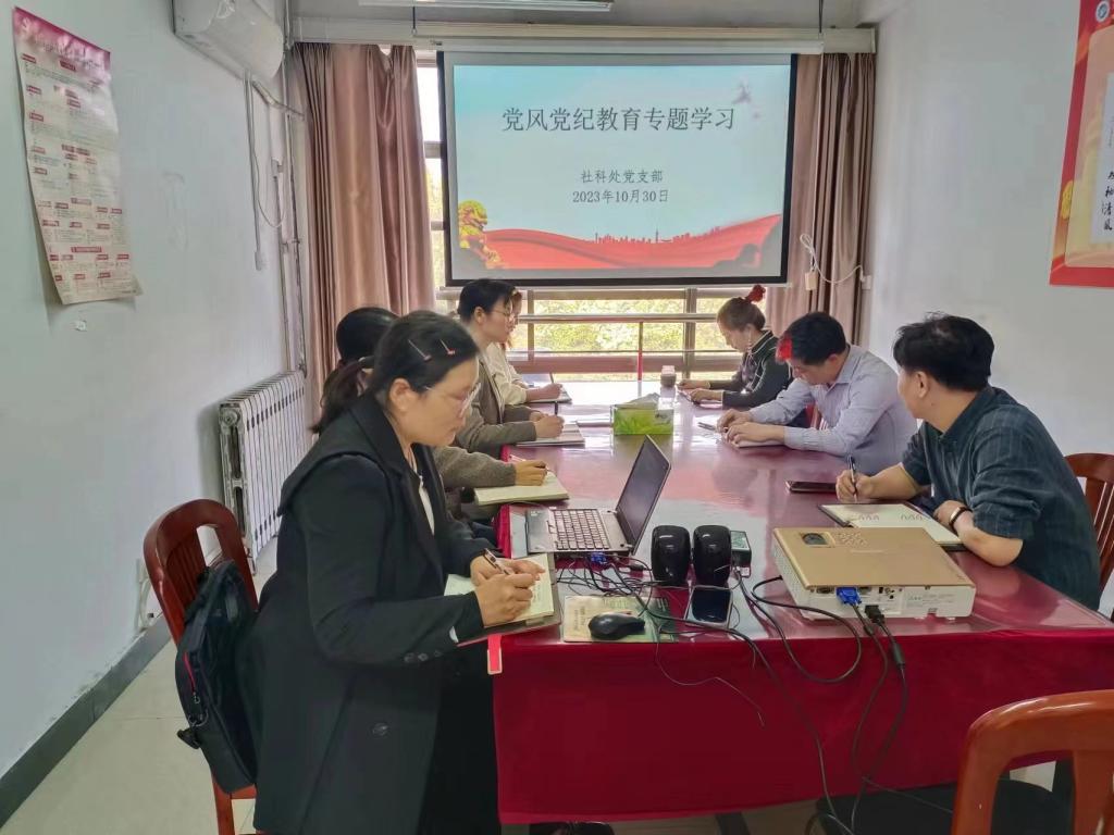 为扎实开展“廉洁教育正风纪 筑牢防线强免疫”主题党风党纪教育月活动,进一步筑牢全体党员干部拒腐防变思想防线,10月30日,社会科学处党支部在力行楼414会议室召开党风党纪教育专题学习,会议由支部书记张合兵主持。