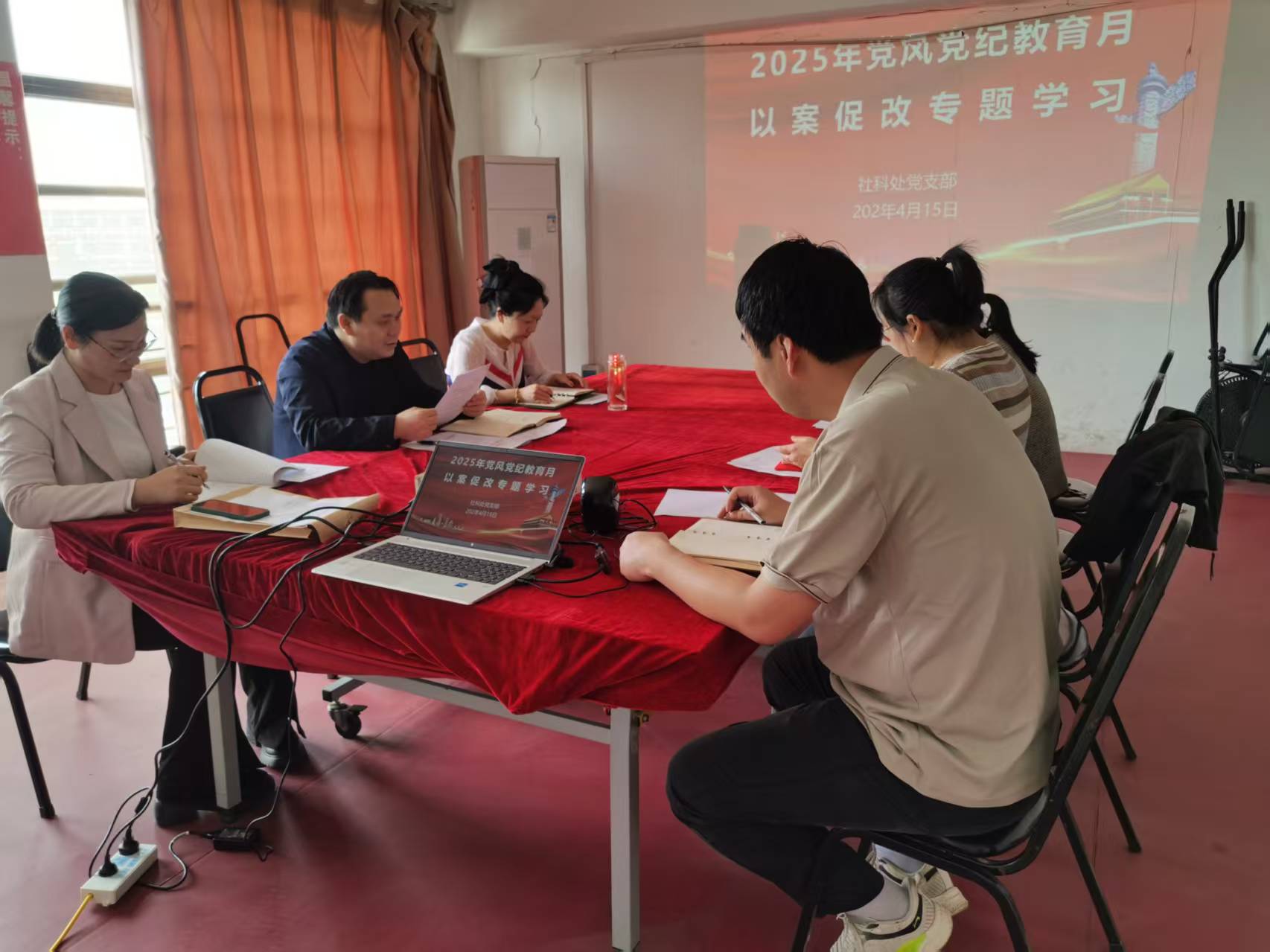 为贯彻落实二十届中央纪委四次全会、十一届省纪委五次全会精神,结合学校深入贯彻中央八项规定精神学习教育安排,4月15日,社科处党支部开展以案促改专题学习,会议由社科处党支部书记曹中秋主持,全体党员及教职工参会。