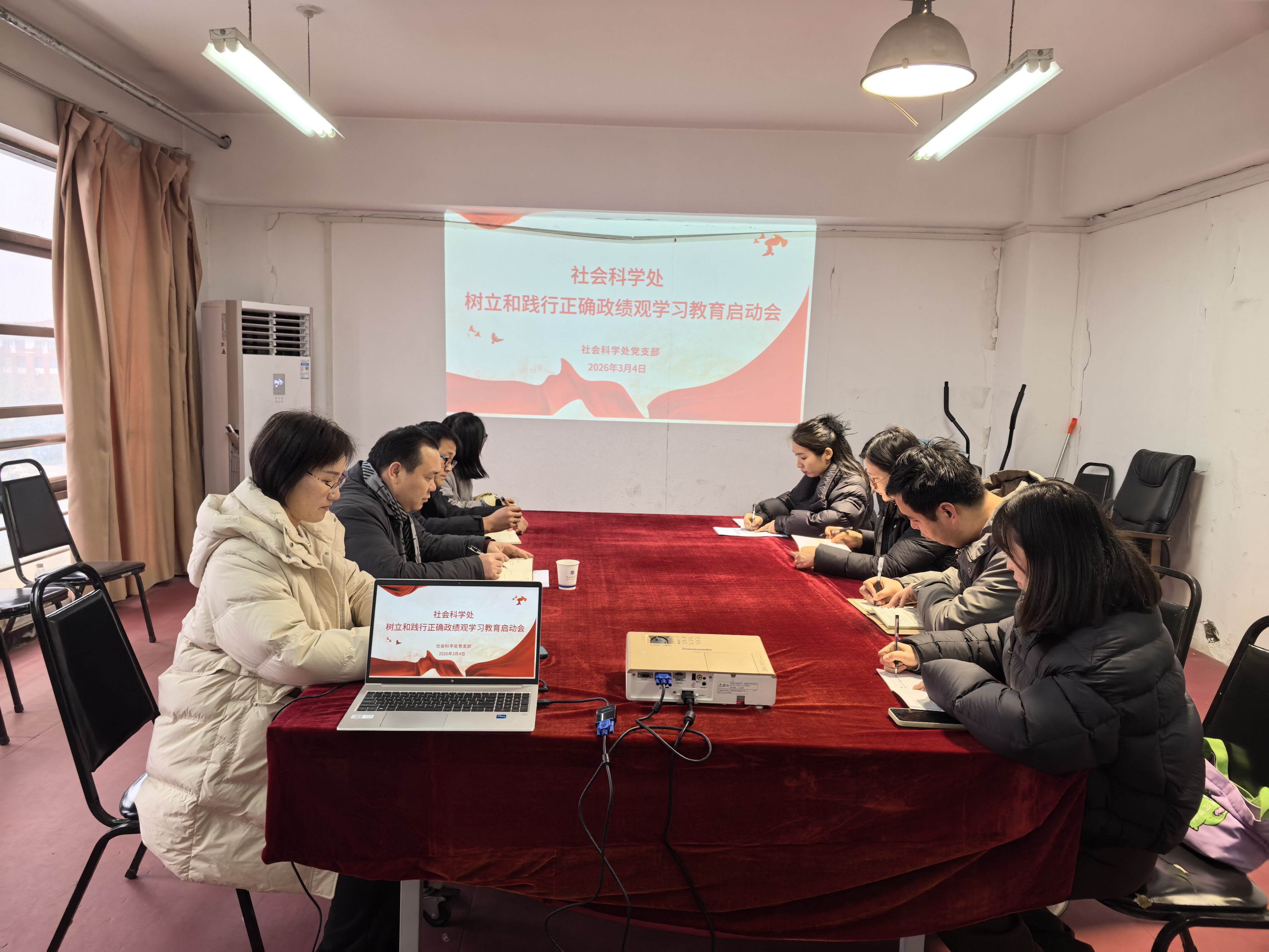 3月4日下午,社科处在力行楼426会议室召开树立和践行正确政绩观学习教育启动会,对2026年全处开展学习教育有关工作进行安排部署。会议由社科处处长曹中秋主持。全体党员及干部参加。