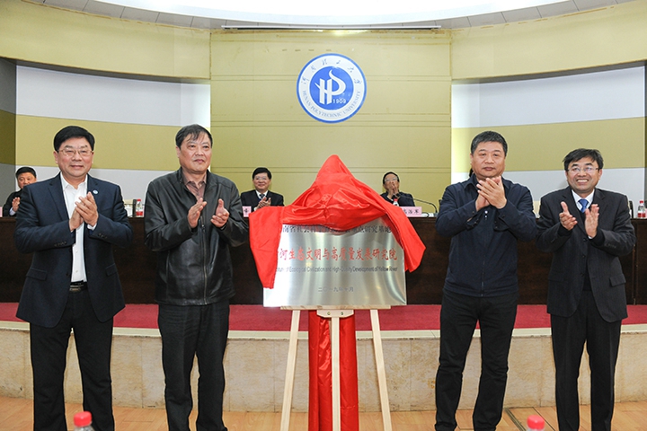 2019年11月5日下午,河南理工大学“黄河生态文明与高质量发展研究院”成立揭牌仪式在力行楼学术报告厅隆重举行。省社科联主席李庚香,省高校工委专职委员高治军,省社科联副主席苗树群和袁凯声,省教育厅社会科学研究与语言文字应用管理处正处级调研员魏军,省社科联普及工作处正处级调研员李明,焦作市社科联主席王蕙丽,校党委书记邹友峰,校党委副书记安士伟,副校长张琨出席揭牌仪式。相关兄弟院校代表、职能部门负责人及部分师生参加了此次活动。
