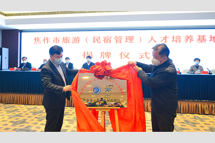 石培哲与是明友共同为焦作市旅游(民宿管理)人才培养基地揭牌
