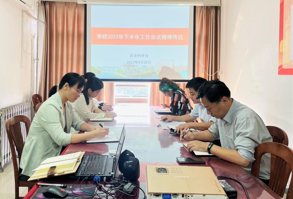 8月28日下午,社科处在力行楼414会议室,召开会议传达学校2023年下半年工作会议精神与安排部署下半年社科工作,处长张合兵主持。