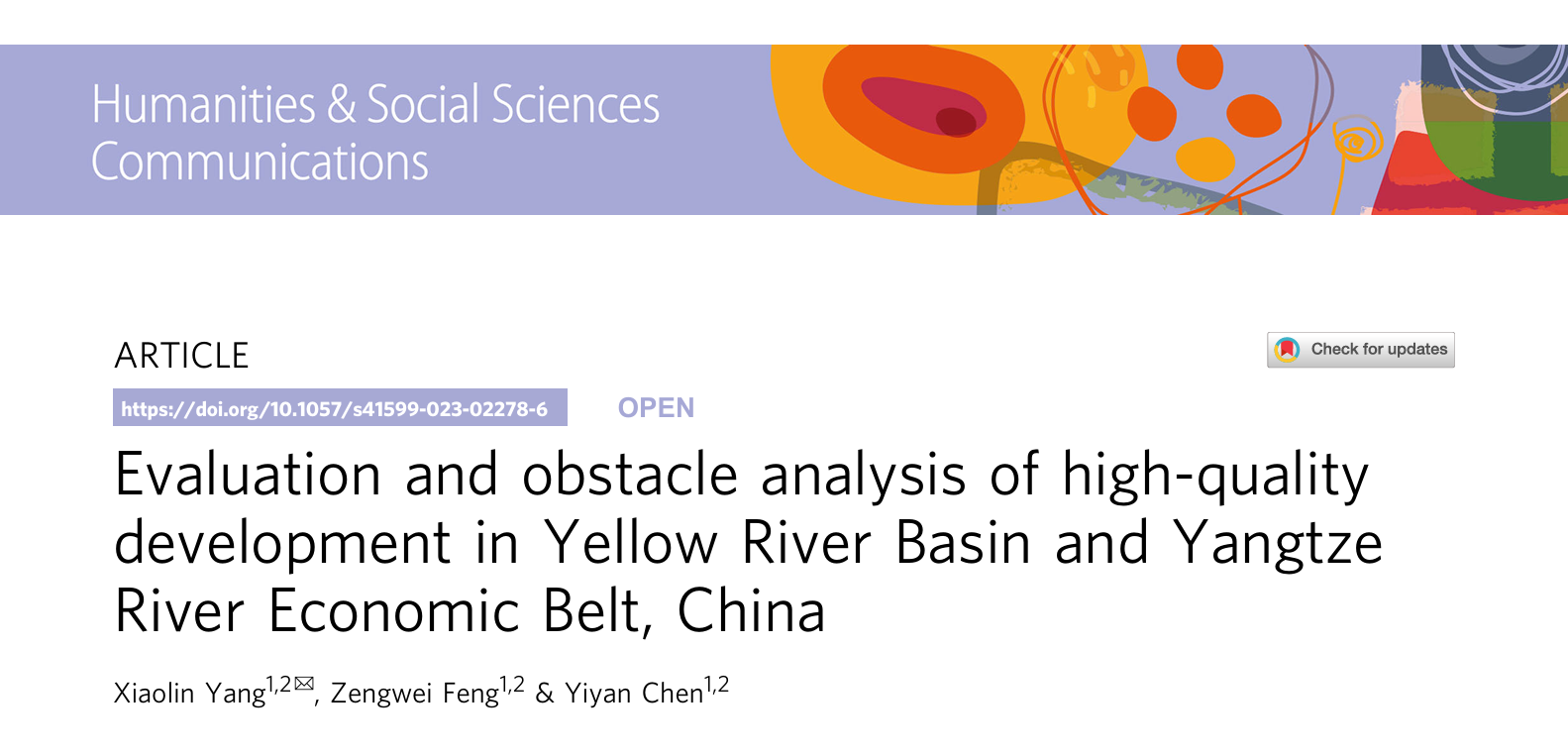 应急学院杨小林教授团队在区域高质量发展研究中取得新进展。2024年2月25日,相关成果以“Evaluation and obstacle analysis of high-quality development in Yellow River Basin and Yangtze River Economic Belt, China”为题,发表在Humanities & Social Sciences Communications,并被WebofScience数据库收录。该期刊是Nature旗下唯一面向人文社会科学的子刊,为SSCI一区期刊,同时被A&HCI索引收录。