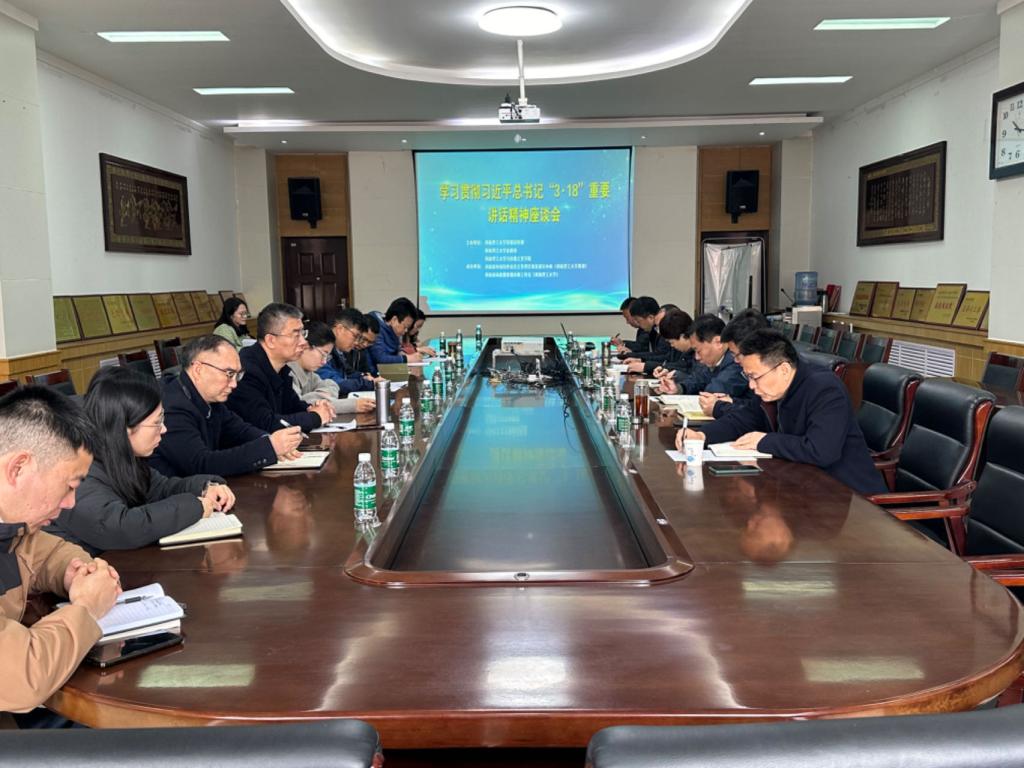 在学校思想政治理论课教师座谈会五周年之际,为进一步贯彻落实习近平总书记关于思政课建设的重要论述,高质量推进新时代高校思政课建设,3月18日,由党委宣传部、社科处、马克思主义学院主办,河南省中国特色社会主义理论体系研究中心、河南省高校思政课名师工作室(河南理工大学)承办的学习贯彻习近平总书记“3·18”重要讲话精神座谈会在文综楼202举行。党委宣传部、社科处相关负责同志,马克思主义学院领导班子、各教研室主任及思政课教师代表出席会议,会议由马克思主义学院党委书记洪振涛主持。