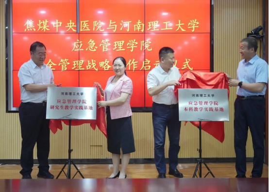 与会领导共同为河南理工大学应急管理学院本科、研究生教学实践基地揭牌。