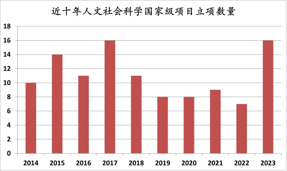 按照“聚焦重大、自下而上、重点突破、引领发展”的原则,分类分层设立国家社科基金重点、基本科研业务费、校内人文社科基金等培育专项,打造多级项目培育体系,建立全校教师高水平人文社科研究数据库,构建“学校-学院-平台团队”校内外三级项目联动论证体系,实施“学院-平台-团队”协同跟踪项目机制。实现国家社科基金重点、艺术学、冷门绝学项目的突破,获批国家社科基金项目57项(重点项目3项),教育部人文社会科学研究项目58项,省部级项目200项,立项经费达7284万元。