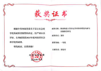 学校依托重大项目、高层次人才、高水平团队、高端科研平台,高水平成果产出能力不断增强。先后实现河南省社会科学优秀成果奖、中国煤炭行业社科成果奖一等奖突破,累计获省级社科优秀成果奖励102项(一等奖4项,二等奖43项,三等奖55项),地厅级奖励430项;共发表CSSCI、SSCI收录等高水平论文1000余篇(其中“三报一刊”、顶级期刊论文210篇),刊发优秀网络文化成果和理论性文章260余篇(人民网、光明网等省级以上官方网络媒体75篇);出版学术著作290余部(人民出版社等全国百佳、省教育厅权威出版社103部);被党中央国务院相关部委、省委省政府及部门采纳或领导批示决策咨询成果52项,被人民日报社《内部参阅》、教育厅《资政参考》等省级以上内参刊用决策建议87项。