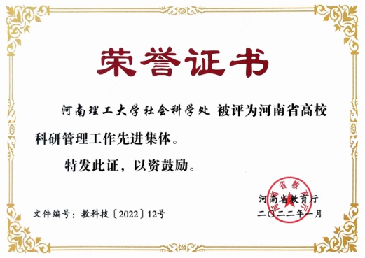 学校以服务学科专业建设为引领,聚焦重大项目承担能力提升,发挥能源经济、应急管理、太极文化、乡村振兴、生态文明等五张特色品牌优势,建立了适应新时代要求的“学校-学院-平台团队”三级高效协同的管理服务新机制,形成了彰显理工特色的哲学社会科学工作新模式,改革举措成效被河南日报报道。先后实现国家社科基金重点项目、省社科成果一等奖、首批省高校哲学社会科学实验室、首批省高校新型品牌智库等重大突破。荣获“河南省高校社科管理先进集体”“河南省高校实施哲社科学繁荣计划先进单位”“全省哲学社会科学规划工作先进单位”等荣誉称号。