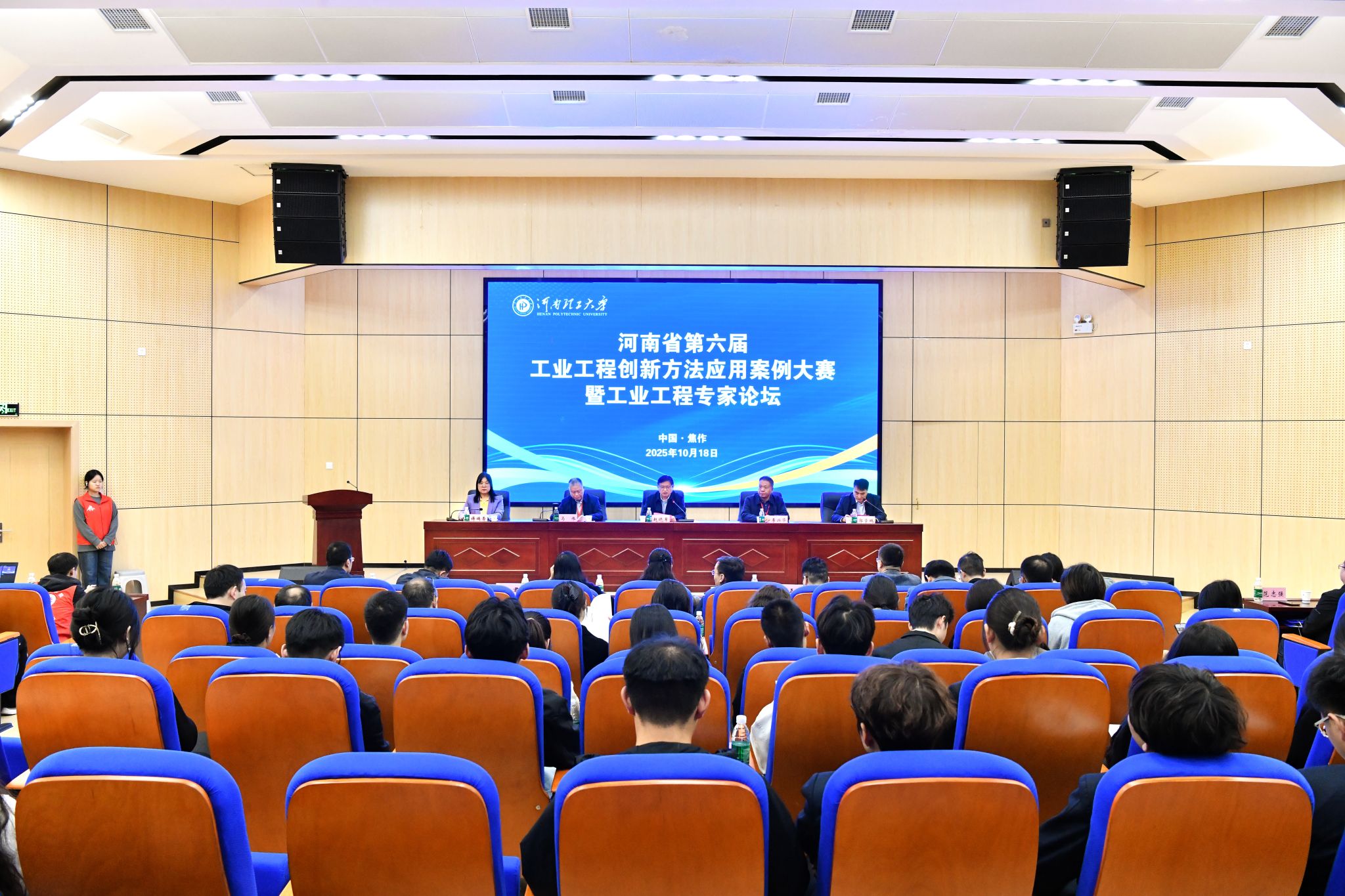 10月18日,河南省第六届工业工程创新方法应用案例大赛暨工业工程专家论坛在我校MBA尚为报告厅举行。大赛由河南省机械工程学会、河南省机械工程学会工业工程专业委员会主办,河南理工大学工商管理学院承办,从全省9所高校61支参赛队伍中脱颖而出的22支参赛队伍进入决赛。本次大赛的主题为“精益强基,智能提质”。来自教育部高等学校工业工程类专业教学指导委员会、河南省机械工程学会、河南省工业工程专业院校等的专家出席开幕式,开幕式由工商管理学院党委书记郭学鹏主持。