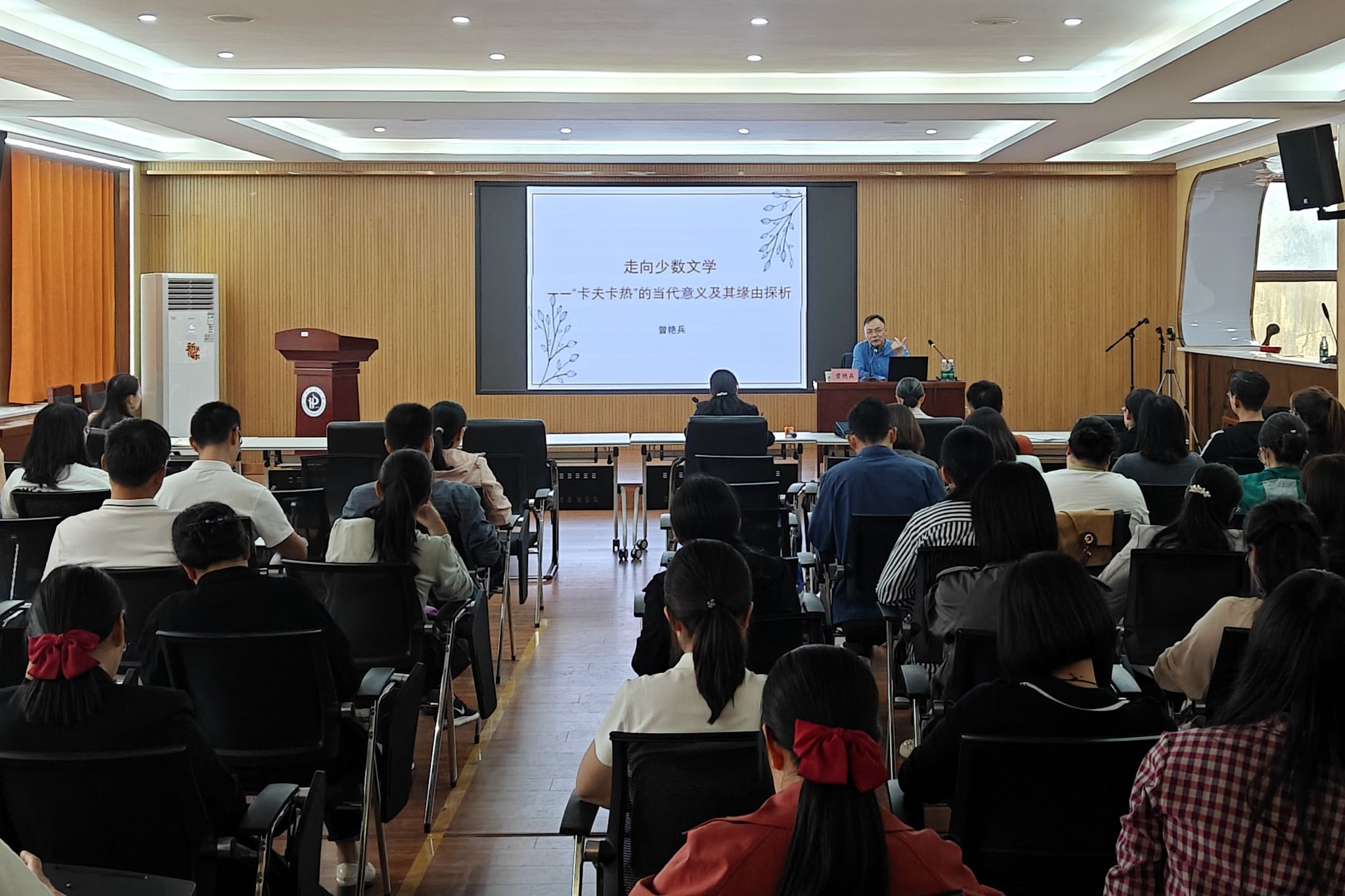 10月15日下午,中国人民大学曾艳兵教授在文综楼302会议室作题为“走向‘少数文学’——‘卡夫卡热’的当代意义及其缘由探析”的学术报告。外国语学院领导及全体教师参加会议。报告会由该院院长李惠敏主持。 报告会上,曾艳兵以诺贝尔奖获得者-Han Kang 为切入点,巧妙地搭建了一个探讨卡夫卡在当代文学中地位的桥梁,使得整个报告既具有前沿性,又不失深度和广度。在报告会中,曾艳兵从“从闫连科说起”“希利斯·米勒如是说”及“从阿甘本到本雅明”三个方面介绍了“卡夫卡热”的当代意义。曾艳兵在报告中多次强调,学术研究不应仅仅停留于表面,而应深入挖掘文本背后的深层含义,同时鼓励老师们进行跨学科、跨文化的比较研究,以拓宽学术视野,推动文学研究的创新发展。本次报告会不仅极大地丰富了外国语学院教师对“少数文学”及卡夫卡研究的认知,更为他们开展深入且系统的学术研究提供了宝贵的指导思想和实践范例。与会教师深受启发,纷纷表示将把曾教授的学术精神和研究方法融入到学术研究中。此次报告会不仅是一次学术的盛宴,更是一次心灵的启迪,为外国语学院的文学研究注入了新的活力和动力。 曾艳兵,文学博士,中国人民大学文学院二级教授,博士生导师,天津师范大学讲座教授,山西大学特聘教授,卡夫卡与中外文学研究中心主任。北京外国语大学王佐良外国文学高等研究院客座研究员。人大复印资料《外国文学研究》原主编。主要从事西方文学与中西文学比较研究、后现代文学文化研究、尤其专注于卡夫卡研究。代表著作有:《卡夫卡研究》《卡夫卡与中国文化》《卡夫卡的眼睛》《东方后现代》《走向比较诗学》《后现代文学文化论稿》等。在《文艺研究》《外国文学评论》等刊物共发表学术论文300余篇,另发表译文及学术随笔数十万字。 |