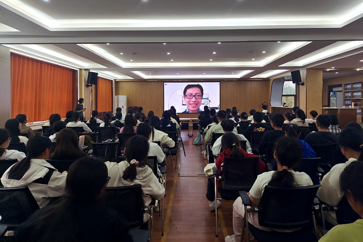 本网讯(通讯员 牛怡丹 汤贝)10月16日下午,外国语学院邀请优秀校友赵帅在文综楼302报告厅以腾讯会议形式为学生作专题分享,报告会由该院党委副书记何军主持,英语专业2024级全体学生和2023级学生代表参与。