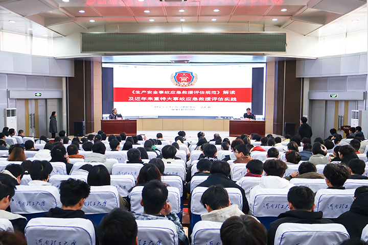 12月22日下午,国家安全生产应急救援中心原党委委员、一级巡视员、教授级高级工程师雷长群,应邀在力行楼学术报告厅为我校师生做《<生产安全事故应急救援评估规范>解读及近年来重特大事故应急救援评估实践》专题学术报告。应急学院全体教师、硕士研究生及本科生270余人参加报告会,报告会由副校长李振华主持。