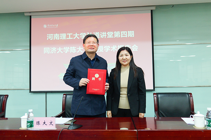 2月28日下午,国家“万人计划”教学名师、教育部“思想道德与法治”分教学指导委员会副主任委员、同济大学陈大文教授做客我校“弘道讲堂”并作学术报告。副校长丁亚红出席报告会并为陈大文颁发马克思主义学院特聘教授聘书,马克思主义学院院长郑小九主持报告会,马克思主义学院专兼职教师和研究生代表聆听报告。