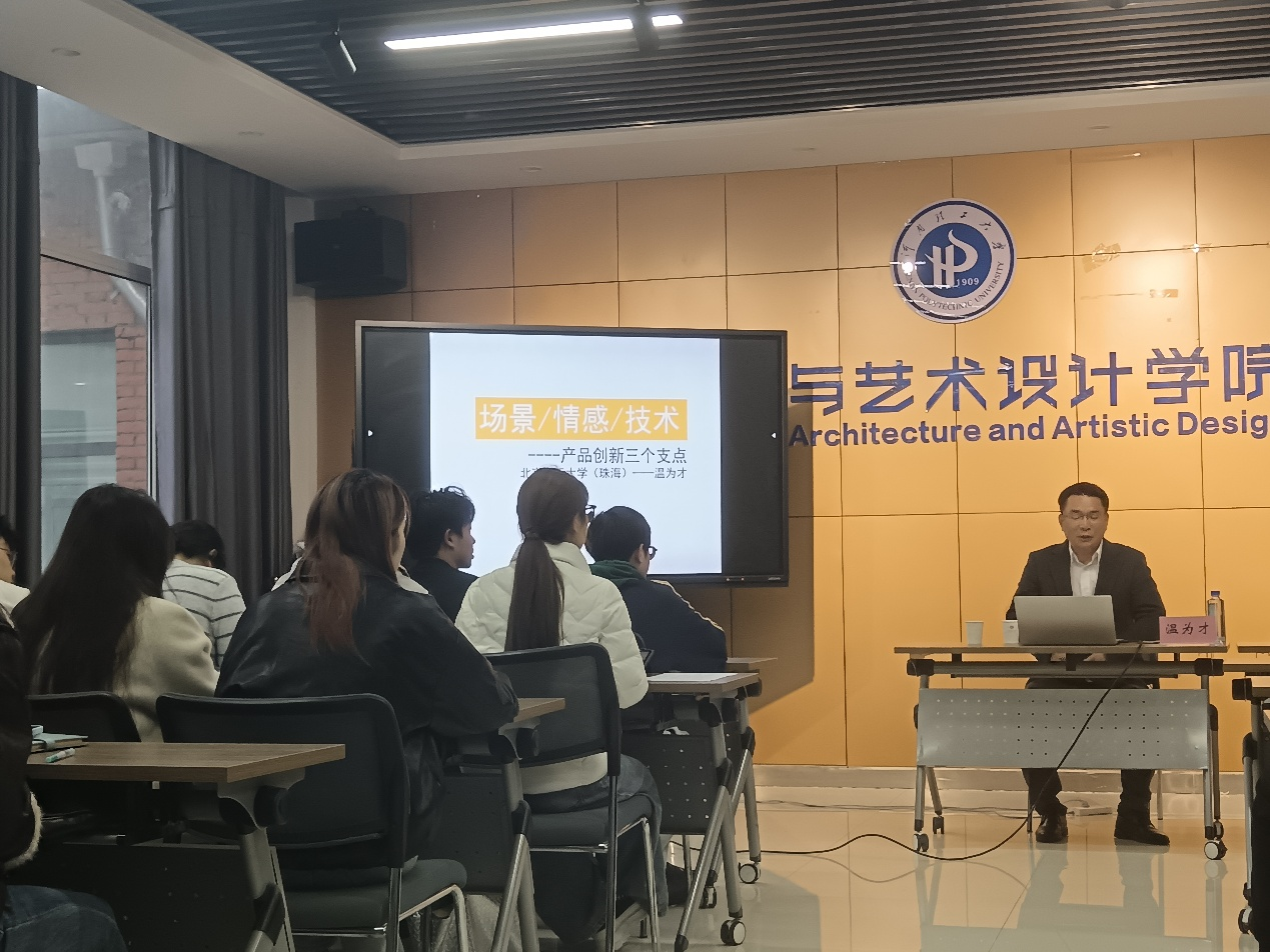 为深化工业设计专业师生对产品创新设计的理解,提升设计思维与实践能力,2025年11月7日15:00,建艺学院于学院楼大会议室举办“感受 场景 技术——产品创新设计三个要素”主题讲座,特邀北京理工大学(珠海)温为才教授主讲,工业设计系师生到场参会。