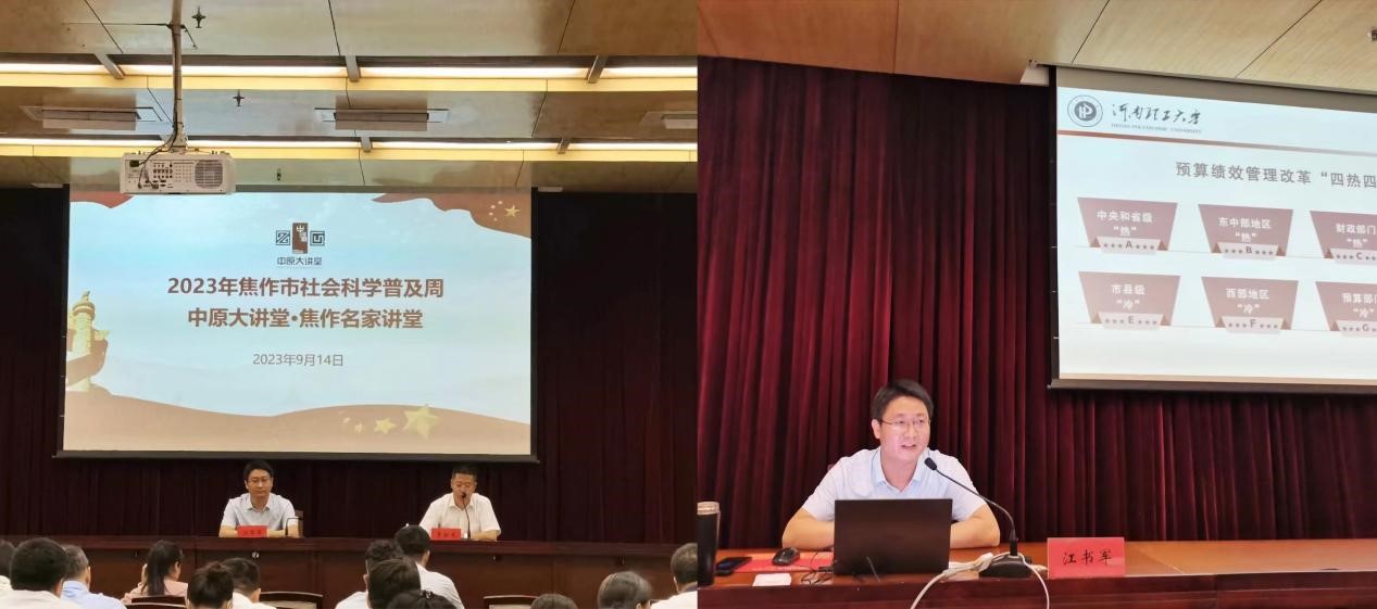 9月14日,焦作市举办了社会科学普及周中原大讲堂·焦作名家讲堂,财经学院江书军副教授受邀参加,并围绕“全面实施预算绩效管理 助力经济高质量发展”做专题报告。
