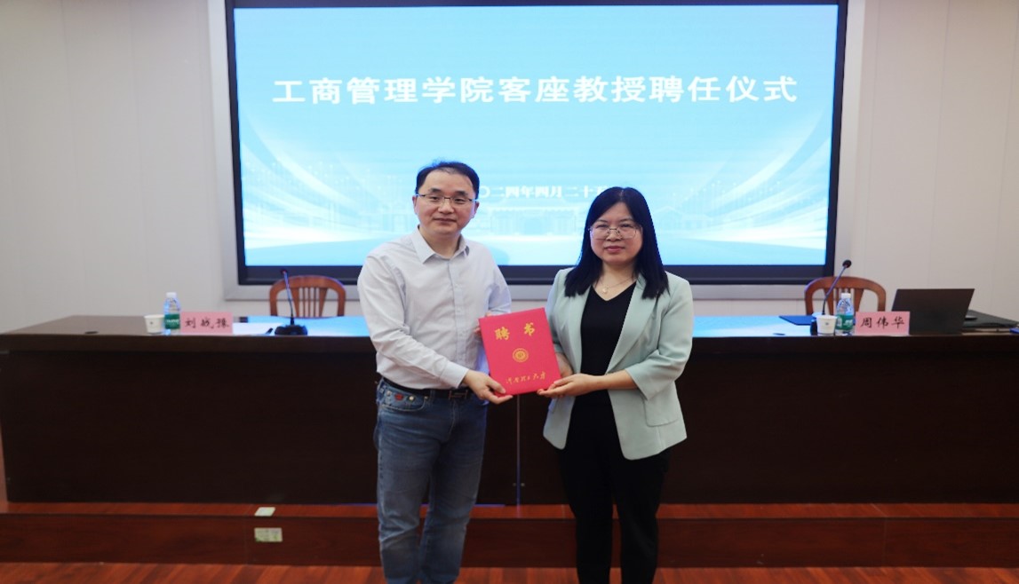 会议伊始,刘战豫代表学院对周伟华的到来表示热烈欢迎,并对周伟华作简要介绍。接着,傅端香代表学院为周伟华颁发客座教授聘书。报告会上,周伟华首先以机器行为与人机协同决策理论与方法作为切入点,指出当前人机协同(人类与机器/AI协作)已成为一种新的工作模式,其优势在于可以充分发挥人类和机器的独特优势,实现互补和协同,从而提升工作效率和质量。接着,周伟华详细介绍了自己团队正从事的人机协同研究,该研究以物流快递包裹打包的员工绩效问题为研究对象,通过引入打包效率实时排名系统,展开了对人机协同情境下员工绩效影响因素及其机制的实证研究,研究揭示了引入打包效率实时排名后,员工的行为会发生什么变化,其工作表现又是如何受到实时排名的影响的。最后,周伟华介绍了为何现在要开展运营管理与供应链的实证研究,他指出经典的运营管理研究依赖于数学建模工具和优化方法,但是如贸易战等问题,没有数据的支撑往往是无法解答的,并认为未来的运营管理研究应更多地与心理学、经济学等进行互动。会后,周伟华与现场师生开展了深入交流,并勉励学院师生应力争在科研道路上谱写属于自己的华丽篇章。