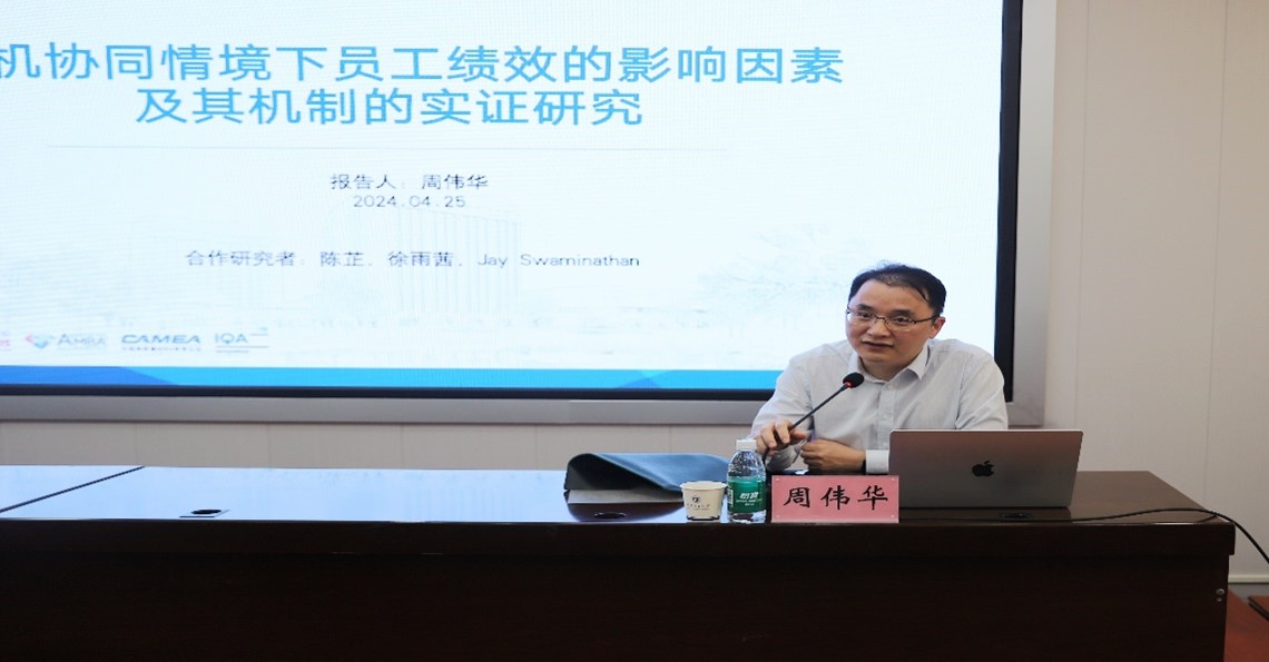 应学院邀请,4月25日上午,浙江大学周伟华教授在1105会议室作题为“人机协同情境下员工绩效的影响因素及其机制的实证研究”的学术报告。院长傅端香、副院长刘战豫、学院教师代表和研究生共100余人参加了报告会。报告会由副院长刘战豫主持。