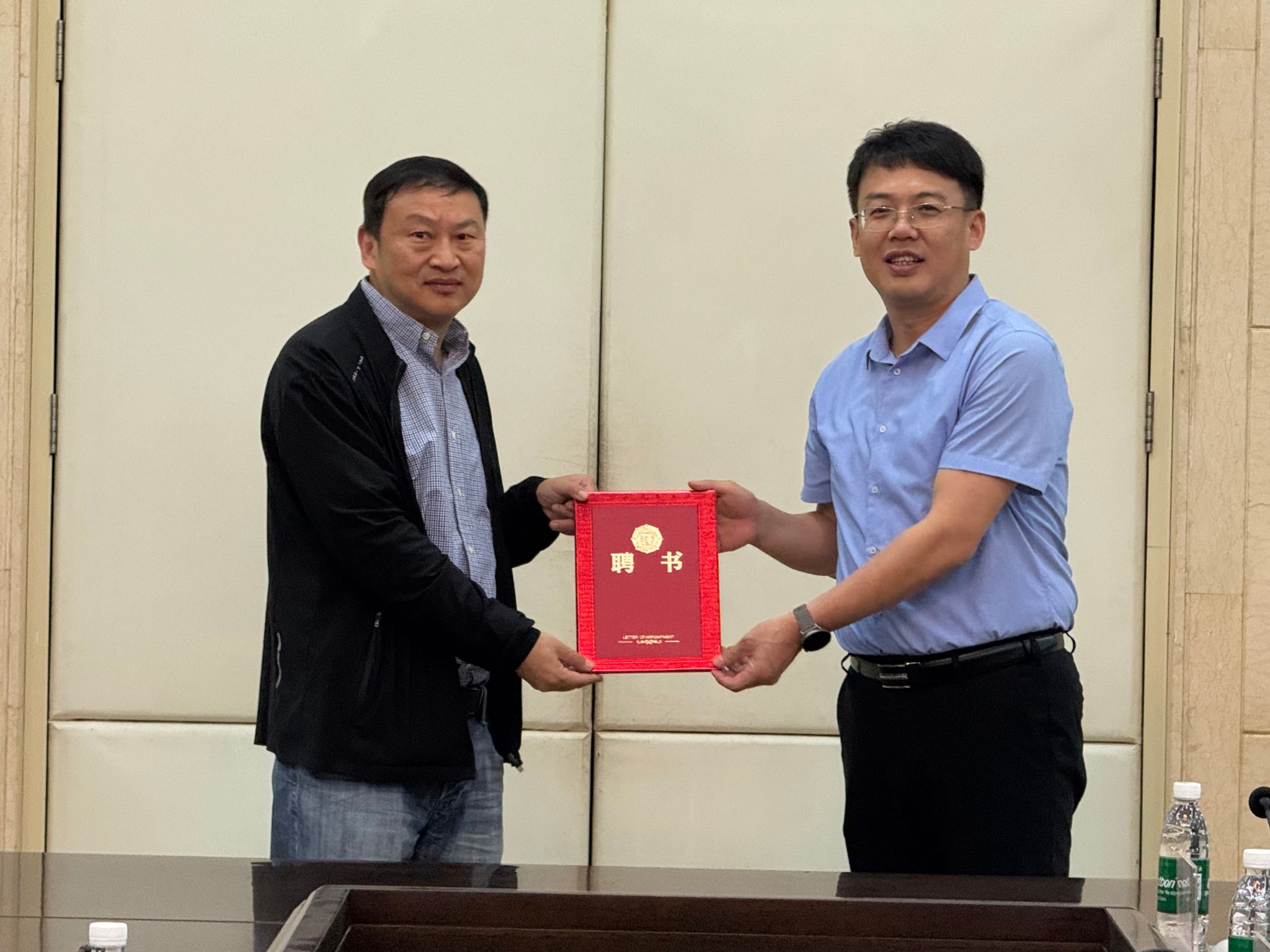 报告会前举行了教授聘任仪式,贺定超、李继凯受聘我院兼职教授,副校长李振华为两位教授颁发聘书并合影留念。