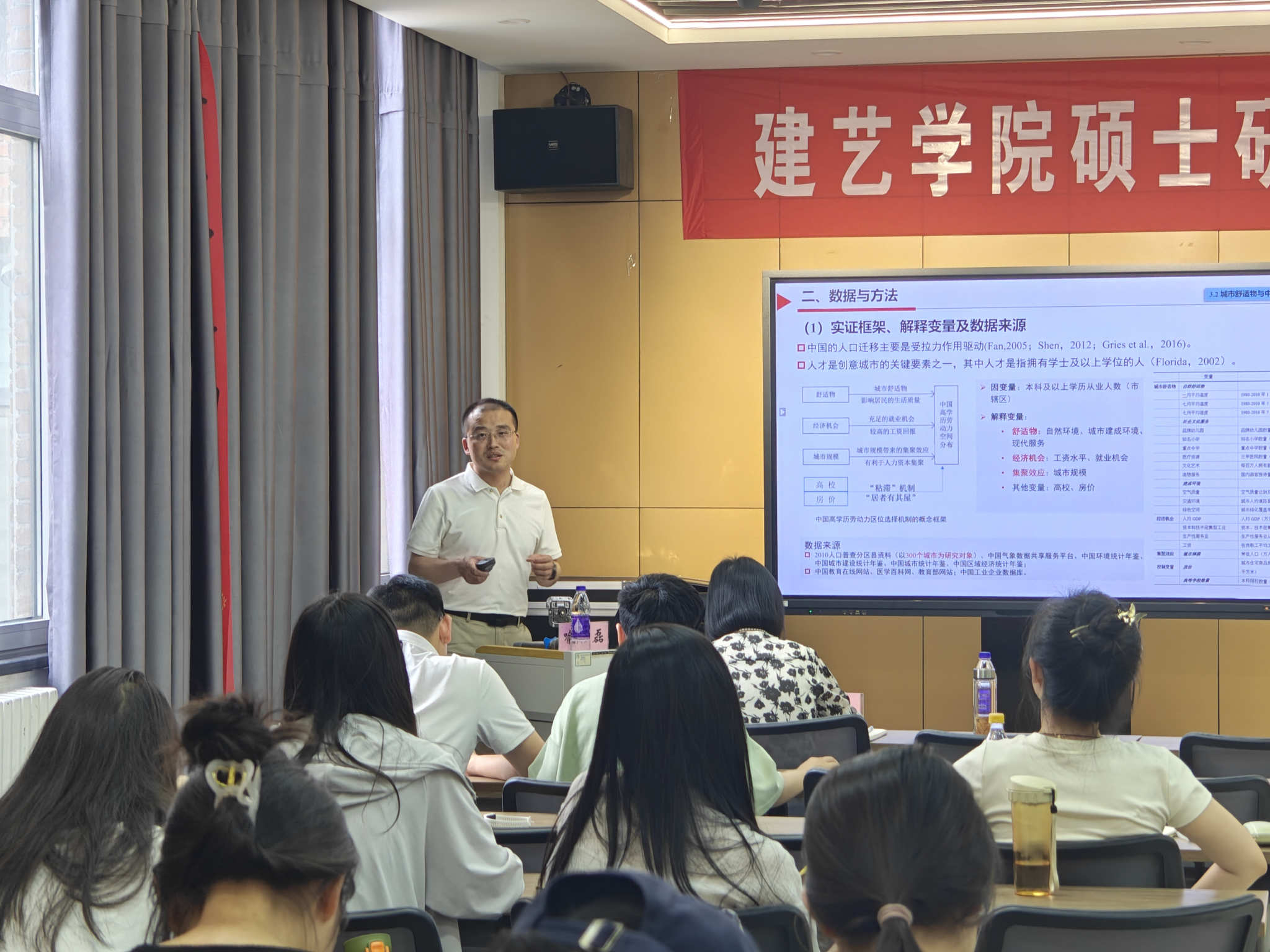 5月20日下午,河南大学喻忠磊副教授应邀为学院师生作题为《地方舒适物与区域发展研究——兼谈对研究生学位论文选题的认识》专题讲座。讲座由建艺学院副院长何艳冰主持,相关专业师生聆听了此次报告。